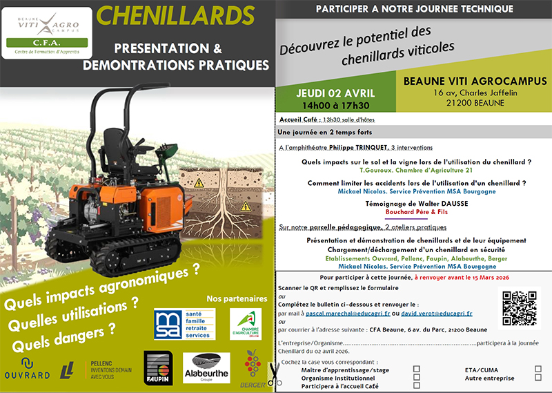 Issu d'un projet initial avec la MSA, le CFA Viti AgroCampus de Beaune organise une journée technique dédiée aux chenillards.